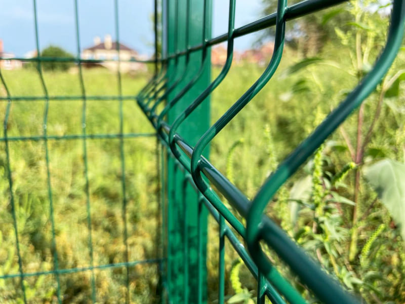 За счет номинального диаметра металлического прутка и V-образному изгибу в 100 мм, забор городского дома из нашей секционной карты выдержит внешнее механическое воздействие, а крепеж, изготовленный по уникальной технологии, обеспечит правильное позиционирование опор, что в свою очередь снижает возможность «заваливания» системы на 45%.